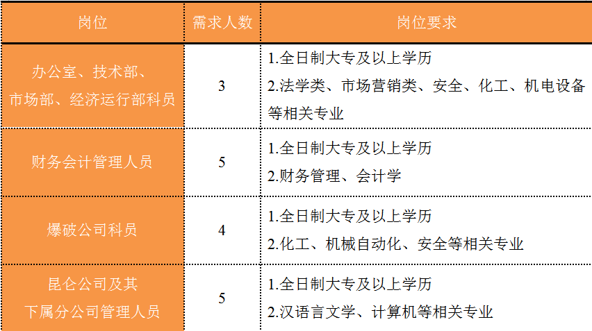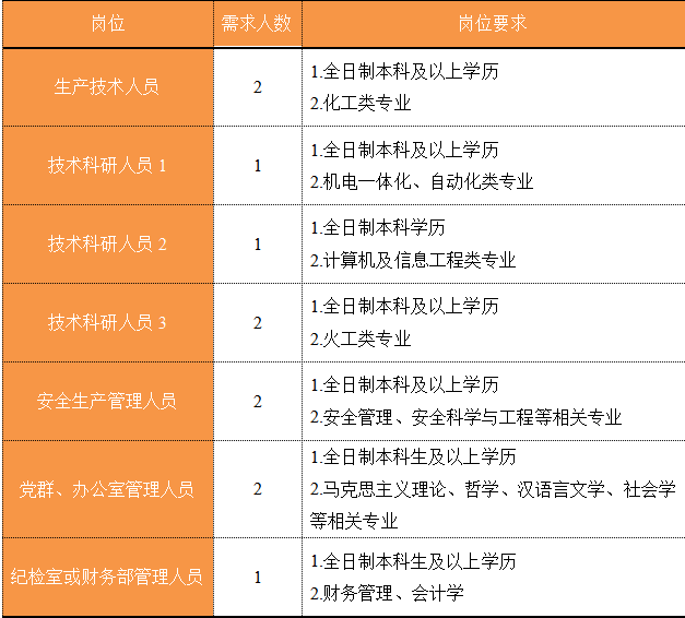 福建省機電(控股)有限責任公司(福建省國防科技工業公司)是由原省國防科工辦所屬企業為主,原省機械廳所屬企業劃入組建的省國資委出資的國有企業,現有全資、控股和參股企業22家。 在閩唯一一家地方軍工企業; 民爆物品生產與銷售資質、軍品科研與生產資質、硝酸銨生產與銷售資質、營業性爆破作業單位一級資質、礦山工程施工總承包一級資質、環保工程專業承包三級資質; 國家甲級設計院,擁有工業與民用建筑工程設計、咨詢、工程監理等綜合資質; 華東地區最大的硝酸銨生產企業... 省級重點實驗室 1個 省級工程技術研究中心 2個 省級企業技術中心 3個 省級技能大師工作室 2個 五險二金 帶薪年假 工會福利 健康體檢 午餐補貼 通訊補貼 文體活動...... (一)基本條件 1.具有中華人民共和國國籍,擁護中國共產黨的領導,熱愛社會主義; 2.遵紀守法,無違法違紀違規等不良記錄; 3.具有良好的身體素質和心理素質; 4.具備符合崗位要求的文化程度和工作能力。 (二)資格條件 2024年應屆高校畢業生(含:①2024年當年度應屆高校畢業生,以畢業證書落款年度為準,已簽訂就業協議、勞動合同、繳交社保等均不影響應屆生身份人認定;②2023年度畢業、具有工作經歷及社保繳交記錄的高校畢業生),且在2024年1月1日至2024年12月31日期間取得學歷學位證書;2024年1月1日至2024年12月31日期間取得國(境)外學位、完成教育部留學服務中心學歷認證后初次就業的留學回國人員。 聯系人:蔣女士 聯系電話:0591-62790002 工作地點:福建福州 1.福建兵工裝備有限公司 聯系人:吳先生 聯系電話:0598-3838649 工作地點:福建永安、福建漳州 1.福建海峽科化股份有限公司分公司 聯系人:葉先生 聯系電話:0598-3868633 工作地點:福建永安、福建龍巖、福建福安、福建明溪 2.福建海峽科化富興建設工程有限公司 聯系人:楊女士 聯系電話:18250589968 工作地點:福建三明 3.福建民化建設工程有限公司 聯系人:鄒女士 聯系電話:13950807836 工作地點:福建省內 4.青海青樂化工機械有限責任公司 聯系人:李先生 聯系電話:0972-8655285 工作地點:青海省海東市樂都區 5.青海海西東諾化工有限公司 聯系人:郭先生 聯系電話:13860516289 工作地點:青海省德令哈市 聯系人:李女士 聯系電話:0591-87386017 工作地點:福建福州 本次招聘采用網上報名方式,符合崗位招聘條件的應聘者,請如實填寫《福建省機電(控股)有限責任公司公開招聘2024年應屆畢業生報名登記表》(點擊福建省機電(控股)有限責任公司公開招聘2024年應屆高校畢業生報名登記表.docx下載),并將報名登記表(PDF版)和個人簡歷(PDF版)統一打包壓縮后,投遞至指定郵箱:fndic25@163.com;并將郵件標題名稱命名為“崗位+姓名+畢業院校+專業” 即日起開始接受報名,截止時間為2024年7月31日。 招聘工作按照簡歷投遞-資格審查篩選-筆試-面試-發放OFFER-體檢-公示-簽約錄用等程序進行。 資格審查貫穿招聘全過程,在招聘各環節若有發現報考信息不實、條件不符等情形的,一律取消應聘資格,不得進入下一環節;已經錄用的,我司有權解除勞動關系,由此發生的個人損失由應聘人員自行承擔。 按照招聘條件對應聘人員進行資格審查,擇優確定參加筆試和面試人員。審核通過者將通過電話或郵件方式通知,審核未通過者不再另行通知。 公開招聘工作堅持“公開、平等、競爭、擇優”的原則,嚴肅紀律,秉公辦事,嚴禁弄虛作假,徇私舞弊,全程接受紀檢監察部門和社會的監督。報考者有弄虛作假、違紀違規行為的,一經發現,均取消其應聘資格,并將有關情況通報其所在學校或單位。構成犯罪的,依法追究刑事責任。